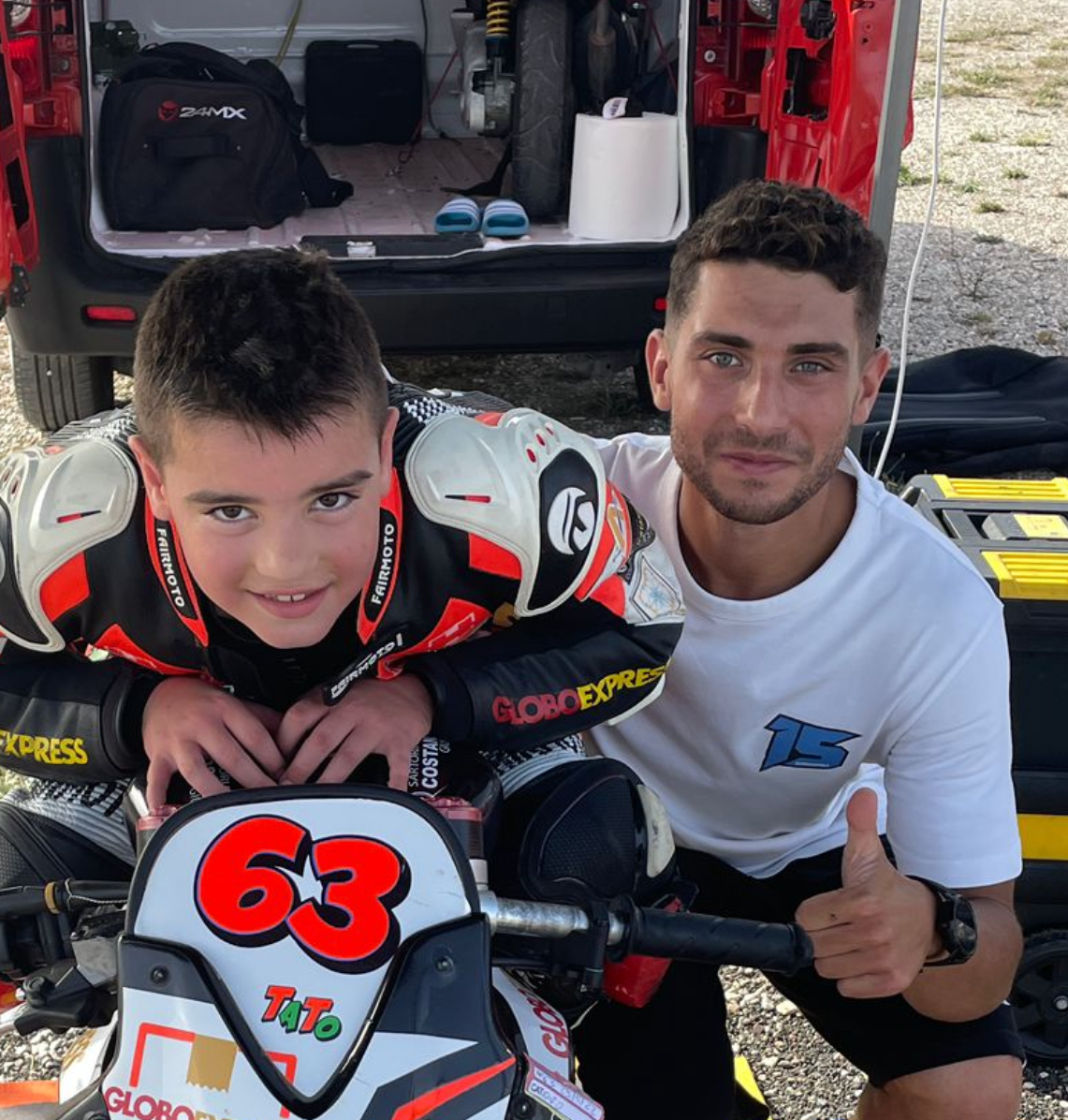 "Conosco Renato ormai da qualche anno, che dire, è un bambino che è riuscito da subito a stupirmi: determinato, solare e sempre pronto a lottare x quello che ama ( andare in moto). A volte non sembra un bambino di 9 anni, ragiona come se ne avesse di più e apprende molto velocemente. Tra le cose che mi hanno colpito sicuramente c'è il fatto che corre per se stesso e poi sorride SEMPRE, mentre guida e quando esce. Sono fiero di lui e penso che, con la giusta dose di fiducia e con un ambiente sereno che lo circonda, possa veramente arrivare lontano. Il mio leone!"